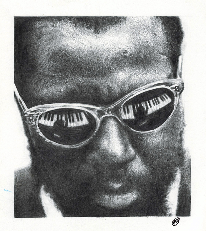 After doing an illustration of Muddy Waters, I decided that I wanted to illustrate another musician. Originally, I thought about doing a picture of Little Walter, due to his relationship with Waters. However, I saw a great photo of Thelonious Monk (love the keyboard in the glasses), and decided I would work with him instead. For this illustration, I used the B graphite pencil. The lead wasn’t as dark as the softer, Sketch and Wash that I used for Waters’ illustration, but I think lighter lead in this case worked better to give this piece a more realistic effect.